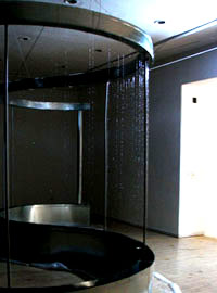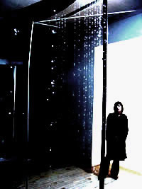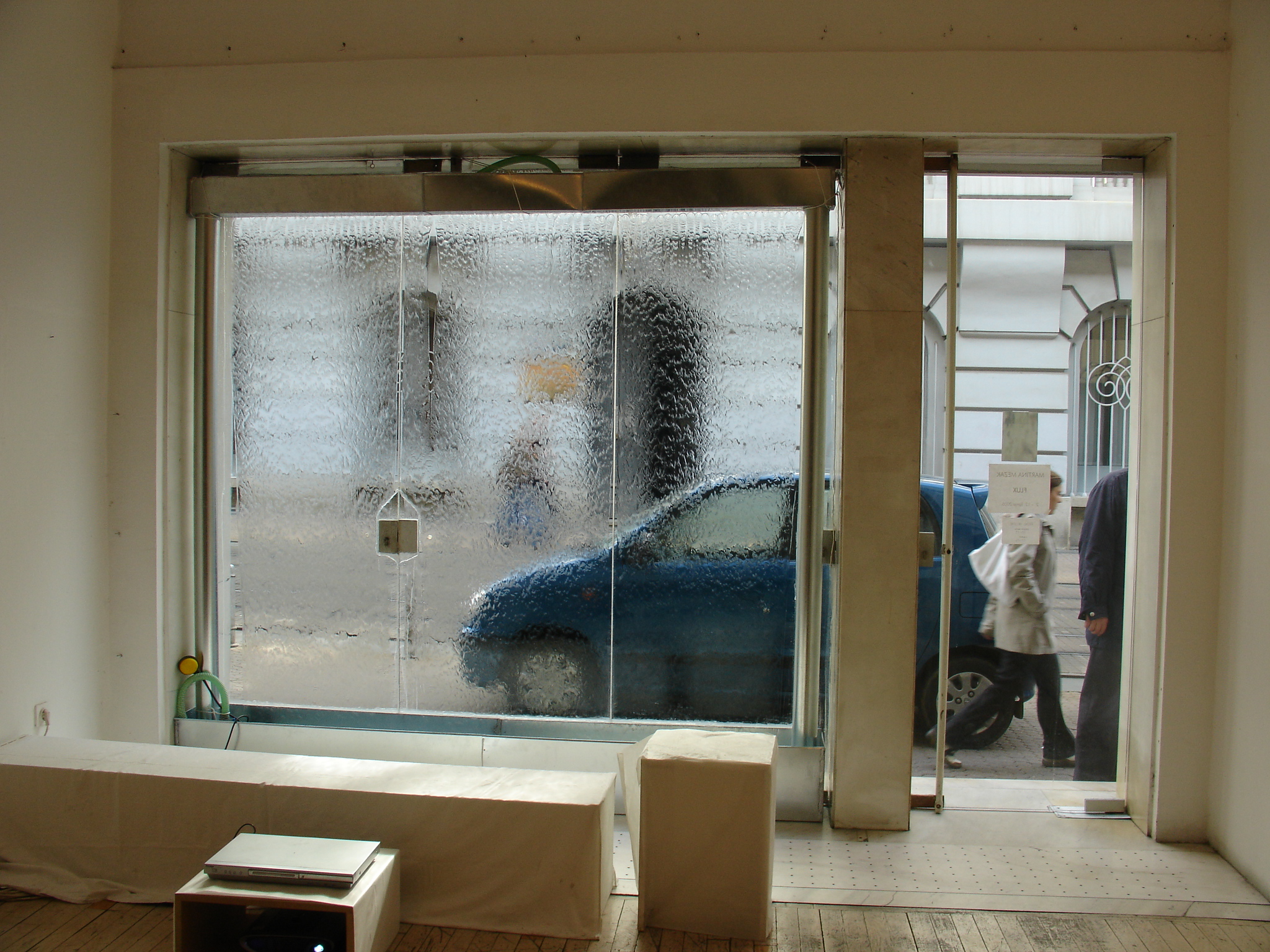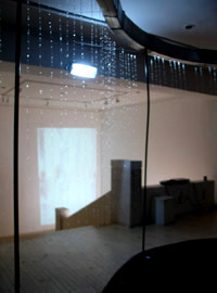 Ambient installation Flux by absence of basic forms of reality and with the use of different sensory media, is trying to bring consciousness into the reality of everlasting constant being. Flowing water as a basic visual element supports symbolism of endless energetic activities.