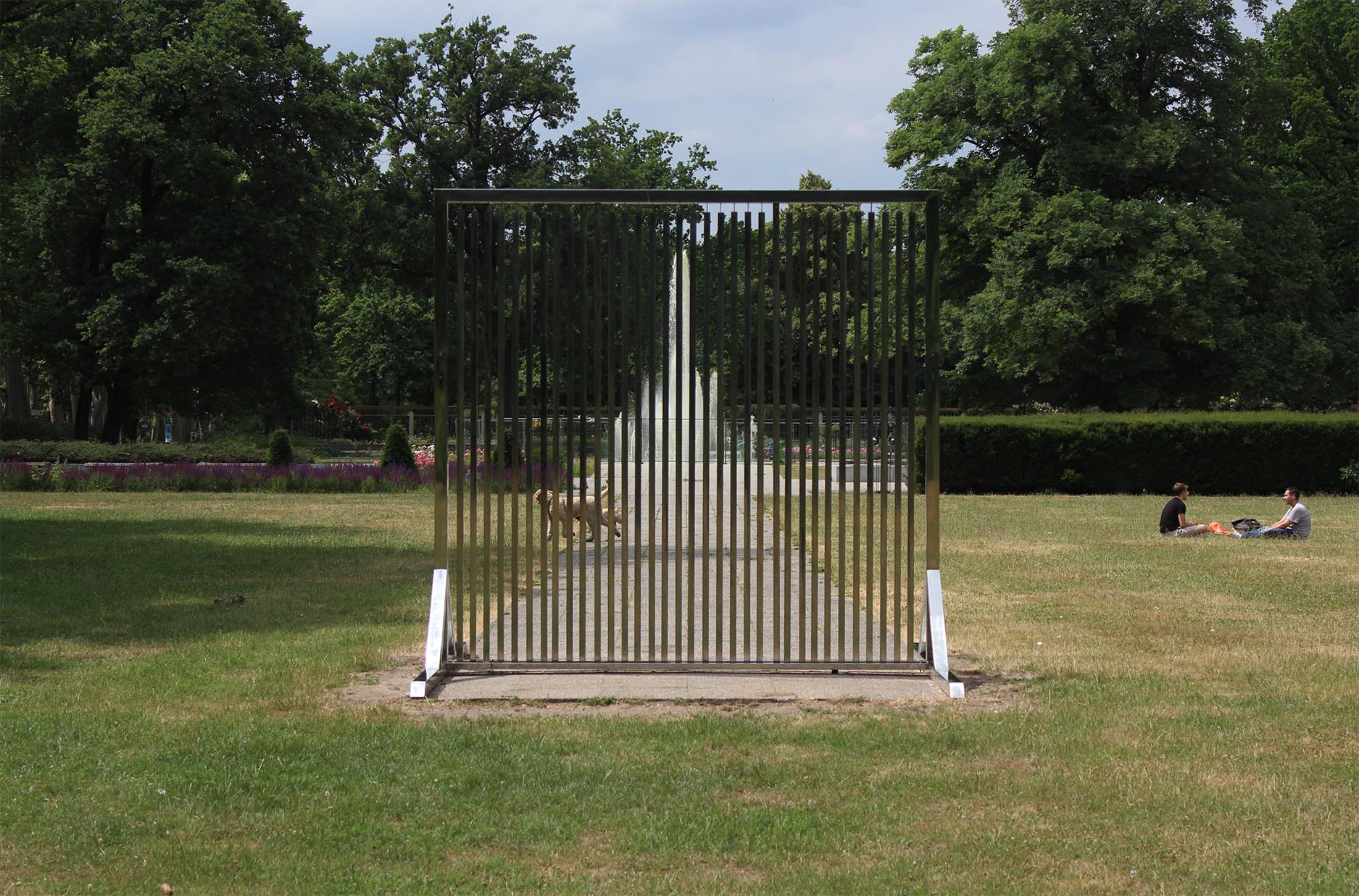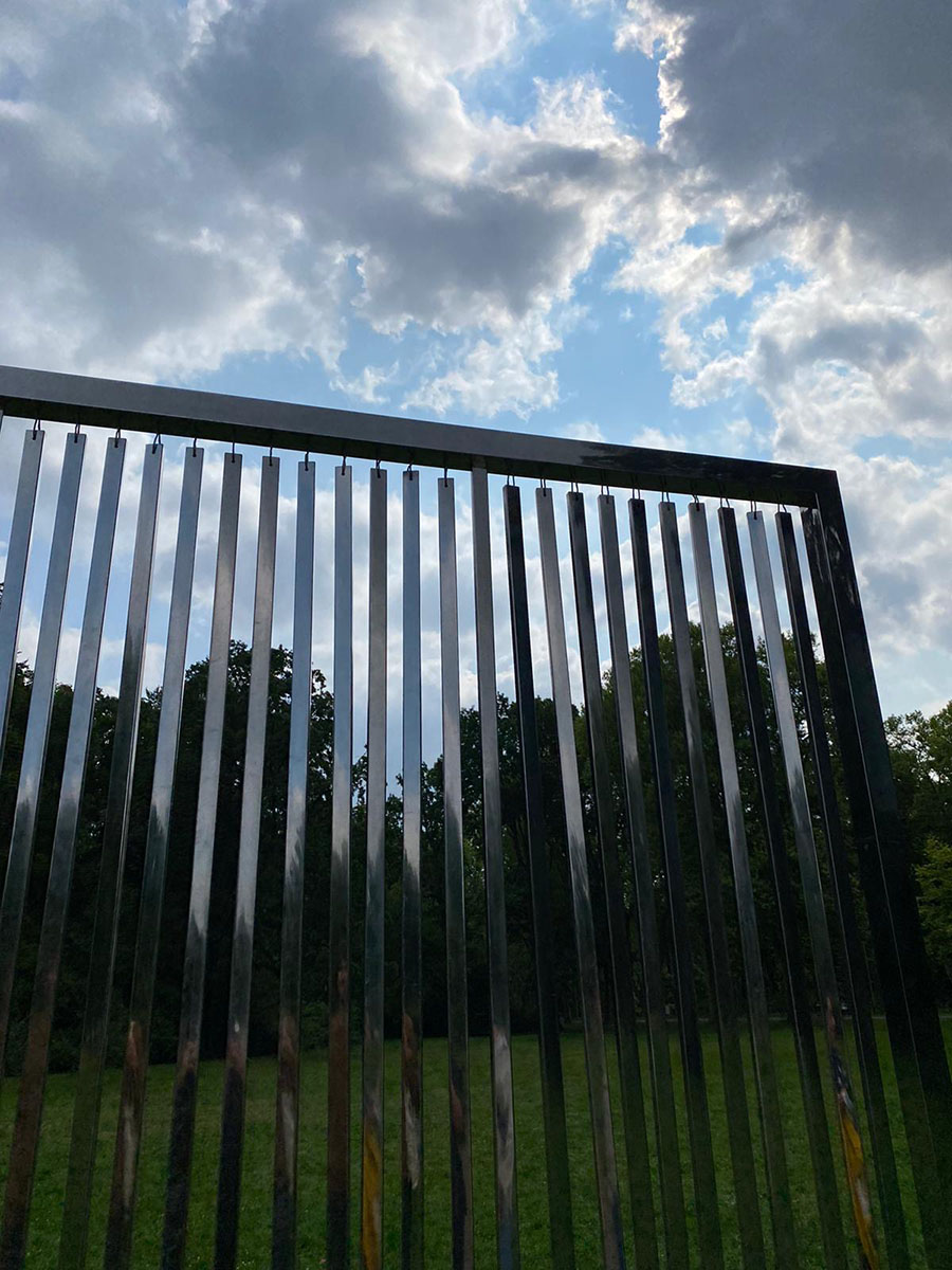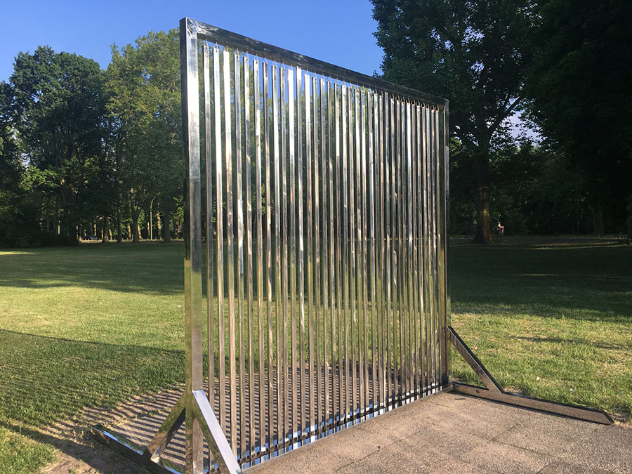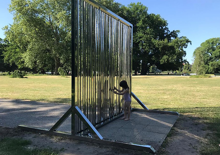 The installation Gone With the Wind is in the form of a passage that stands at the end of the path and reflects the surrounding environment.